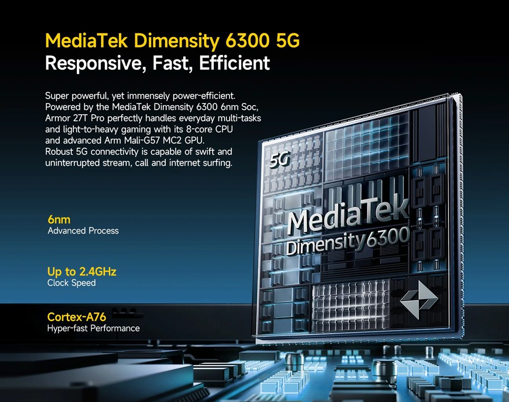 -Επεξεργαστής: MediaTek Dimensity 6300 with 5G, MT6835T, Octa Core, up to 2.4GHz