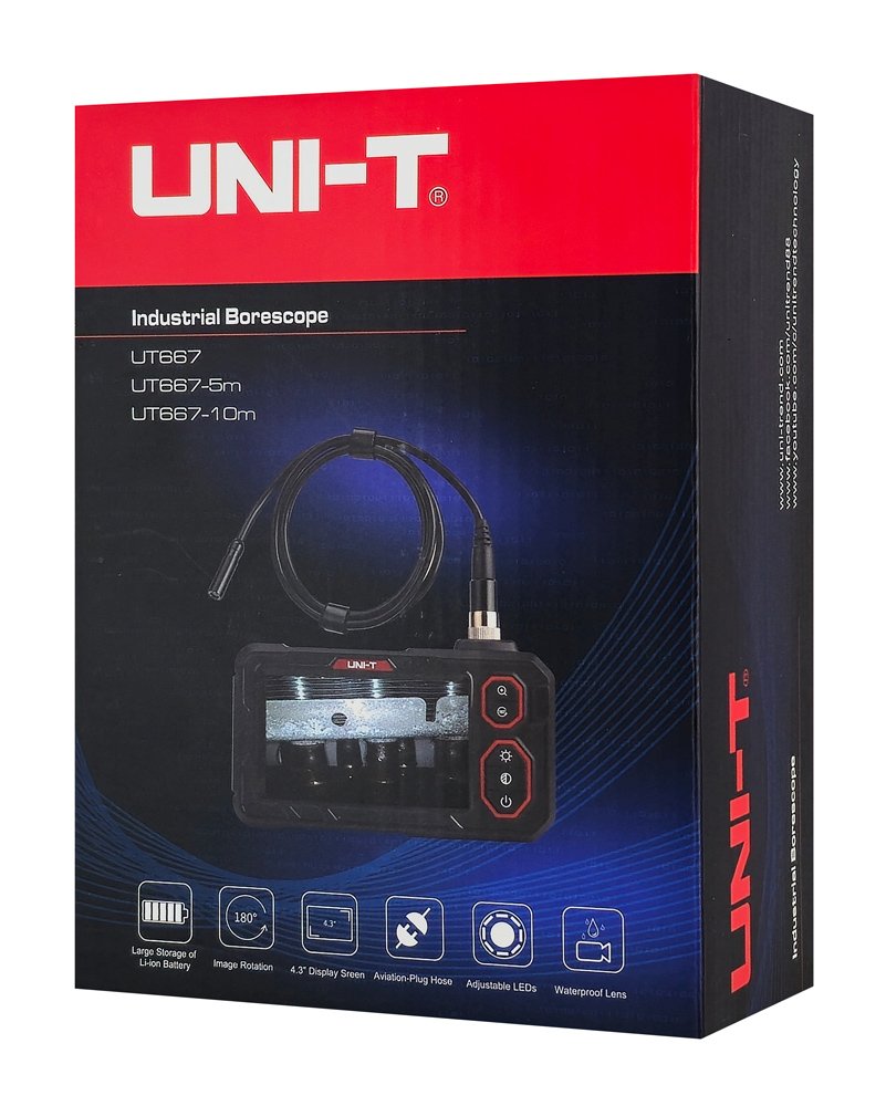 UNI-T ενδοσκοπική κάμερα UT667 με οθόνη απεικόνισης, LED, 1m, IP67
