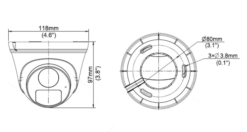 DORI Distance: Lens: 2.8mm, Detect: 63m, Observe: 25.2m, Recognize: 12.6m, Identify: 6.3m