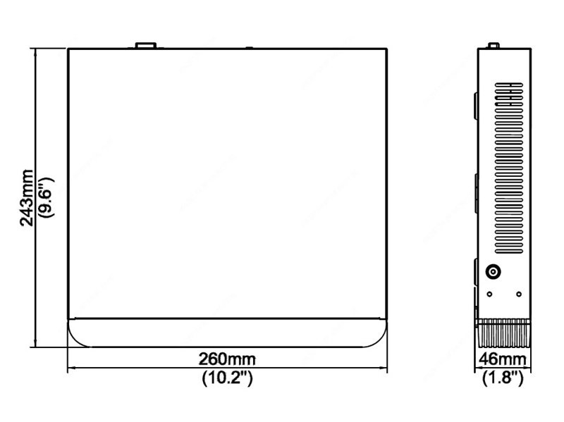 Dimensions (WxDxH): 260 x 243 x 46mm
