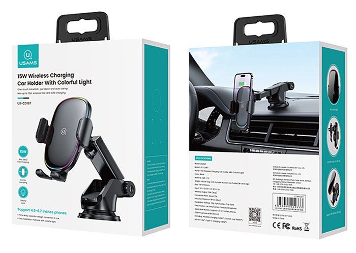 USAMS ασύρματος φορτιστής & βάση αυτοκινήτου US-CD187, 15W, μαύρος