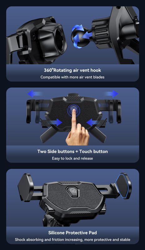 Βάση αυτοκινήτου για smartphone με στήριξη σε οριζόντιους ή κάθετους αεραγωγούς του αυτοκινήτου.