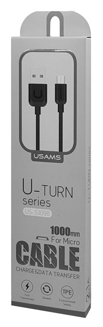 Micro USB καλώδιο φόρτισης και data, της σειράς U-Turn της Usams, η οποία χαρακτηρίζεται από την μοντέρνα και κομψή εμφάνιση και την αξιοπιστία της. Τα καλώδια της σειράς U-Turn κατασκευάζονται από TPE+PVC, για αντοχή στη χρήση, υποστηρίζουν φόρτιση έως 2.1A και μεταφορά data.