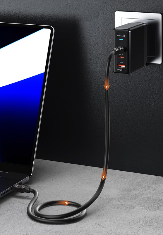 Καλώδιο φόρτισης και μεταφοράς δεδομένων USB-C σε USB-C της Usams. Υποστηρίζει φόρτιση με απόδοση έως 100W και μεταφορά δεδομένων με ταχύτητα έως 480Mbps.