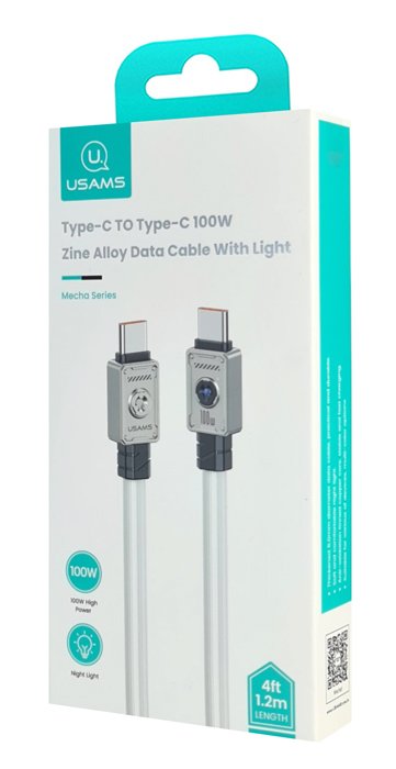 USAMS καλώδιο USB-C σε USB-C US-SJ684, 100W, 480Mbps, 1.2m, λευκό