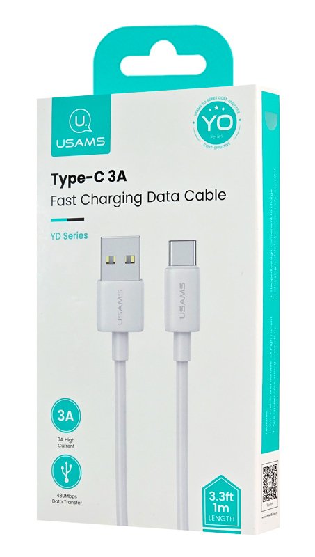 Καλώδιο φόρτισης και μεταφοράς δεδομένων USB-C σε USB της Usams. Υποστηρίζει φόρτιση με απόδοση έως 3A και μεταφορά δεδομένων με ταχύτητα έως 480Mbps.