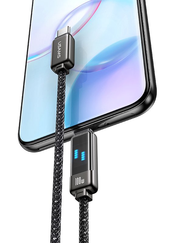 Καλώδιο φόρτισης και μεταφοράς δεδομένων USB-C σε USB-C της Usams. Υποστηρίζει φόρτιση με απόδοση έως 100W και μεταφορά δεδομένων με ταχύτητα έως 480Mbps.