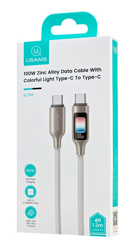 Καλώδιο φόρτισης και μεταφοράς δεδομένων USB-C σε USB-C της Usams. Υποστηρίζει φόρτιση με απόδοση έως 100W και μεταφορά δεδομένων με ταχύτητα έως 480Mbps.