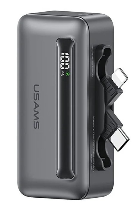 USAMS power bank CD233, USB-C/Lightning έξοδος, 4500mAh, 20W, γκρι